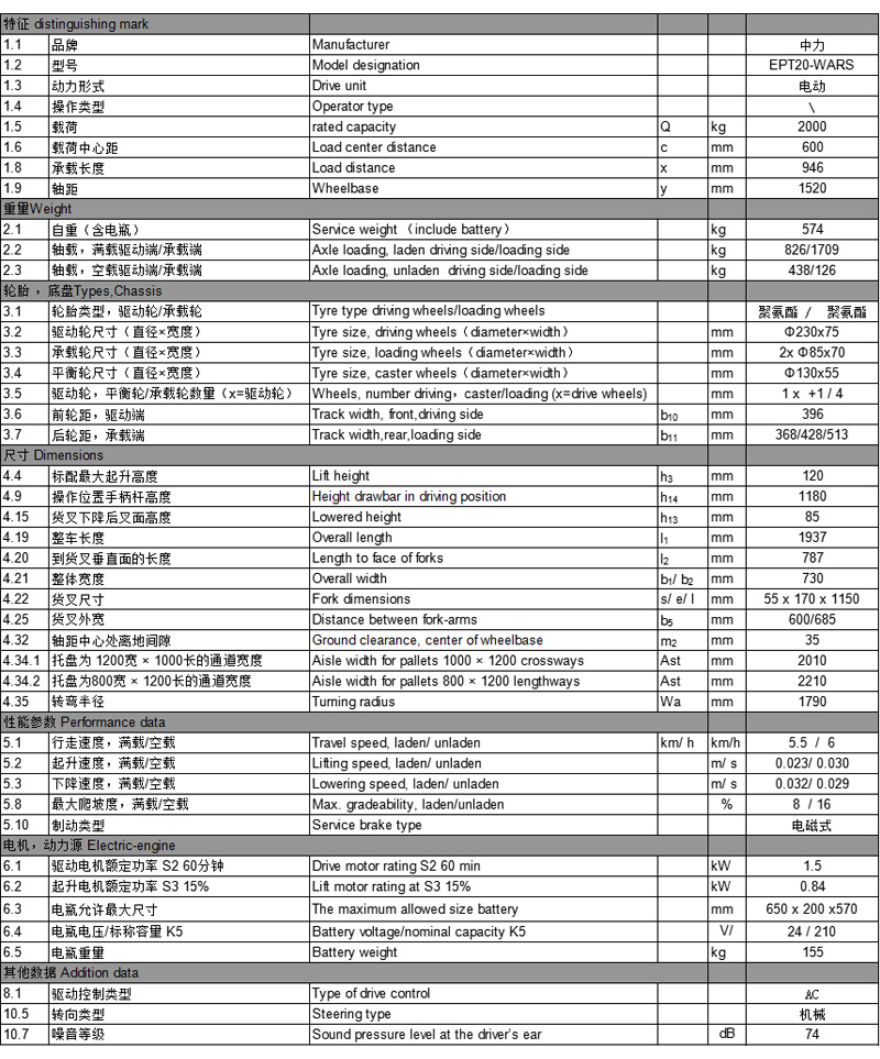 中力2.0噸電子轉(zhuǎn)向電動(dòng)搬運(yùn)車(chē) EPT20-WARS